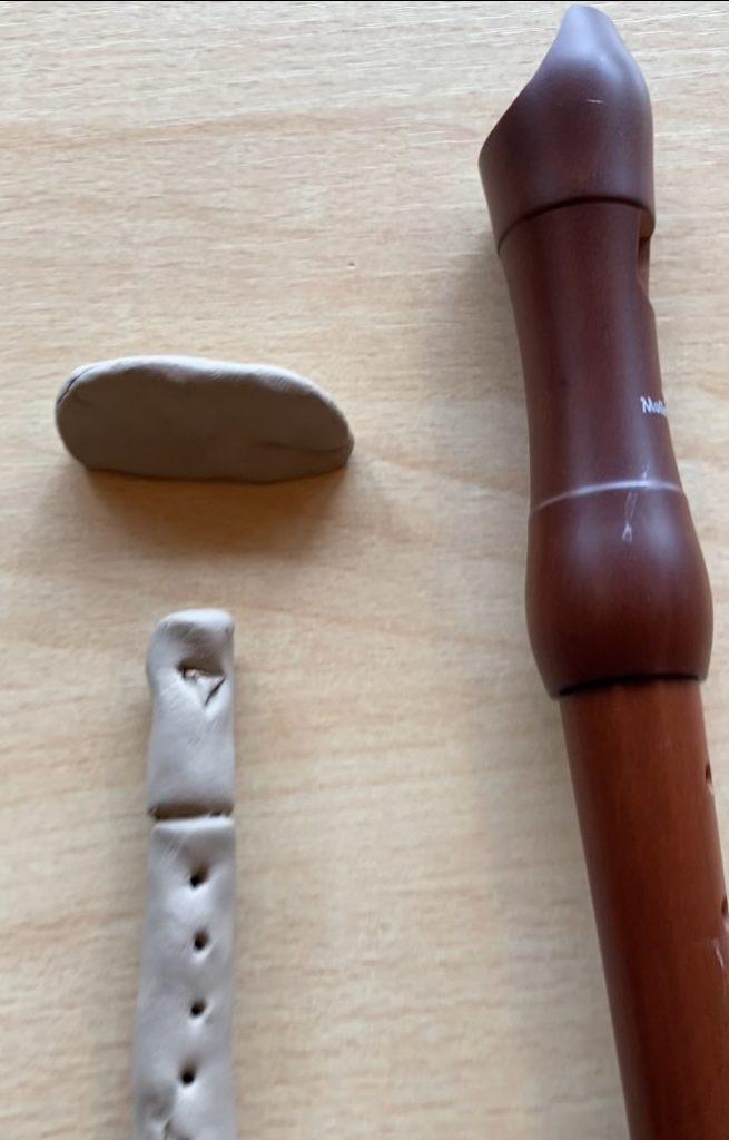 Vor den Ferien modellierten wir Blockflöten aus Modelliermasse, aus der garantiert kein Ton kommt. Warum nochmal?